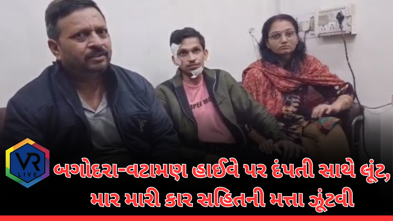 Ahmedabad news: અમદાવાદ ગ્રામ્ય વિસ્તારમાં હાઈવે પર ગુનાખોરી બેફામ બની રહી હોય તેમ વધુ એક ગંભીર બનાવ સામે આવ્યો છે. બગોદરા-વટામણ હાઈવે પર ગત રાત્રે વડોદરાથી સુરેન્દ્રનગર તરફ જઈ રહેલા દંપતીને બે અજાણ્યા લૂંટારૂઓએ નિશાન બનાવી હુમલો કર્યો હતો અને કાર, મોબાઈલ ફોન તથા રોકડ રકમ ઝૂંટવી લઈને ફરાર થઈ ગયા હતા.