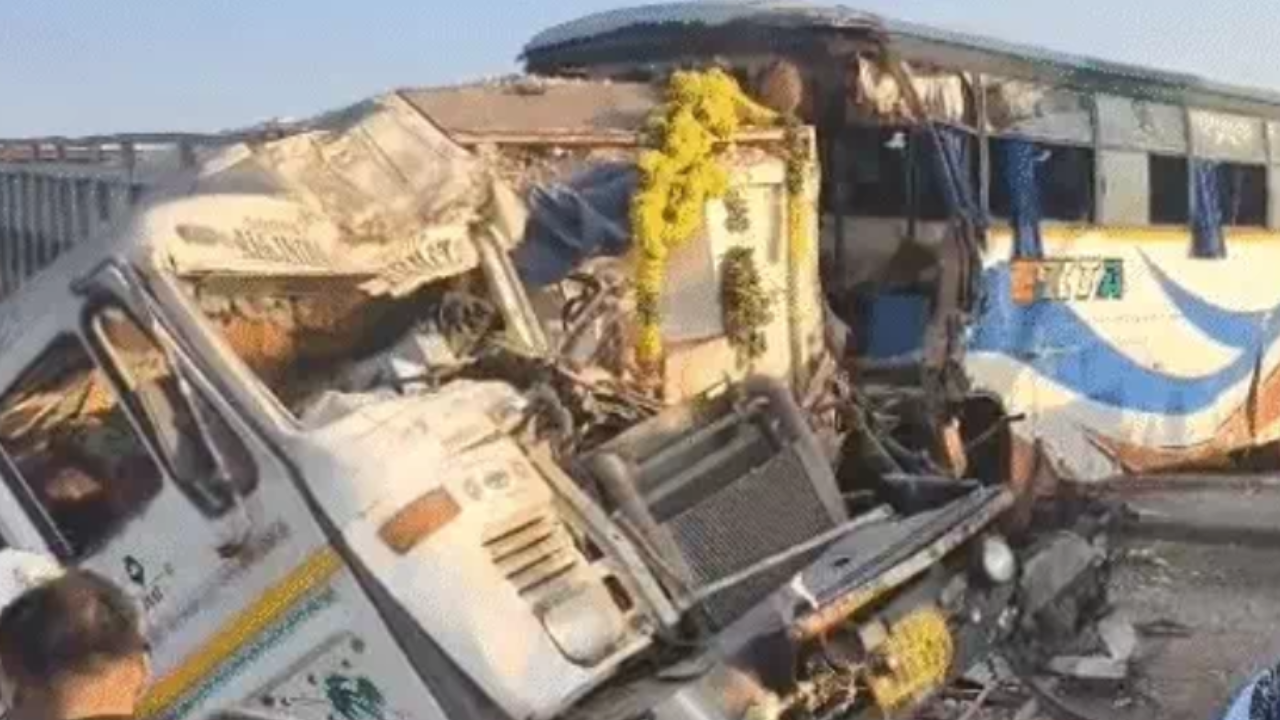મળતી માહિતી મુજબ, મંગળવારે સાંજે લગભગ 4:30 વાગ્યે બસ અને ટ્રેલર વચ્ચે ટક્કર થતાં બંને વાહનોનો કચ્ચરઘાણ વળી ગયો હતો. અકસ્માતની ભયાનકતા એવી હતી કે બસનો આગળનો ભાગ સંપૂર્ણ રીતે ચકનાચૂર થઈ ગયો.