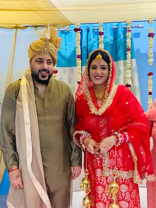 - શાહી અંદાજ: વાયરલ ફોટોમાં બાદશાહ ગોલ્ડન સાફો અને બ્રાઉન કલરના કુર્તા-પજામામાં જોવા મળી રહ્યો છે. જ્યારે ઈશા રિખીએ લાલ અને ગોલ્ડન રંગનો પરંપરાગત પંજાબી સૂટ પહેરીને સાદગીભર્યો લુક અપનાવ્યો હતો.