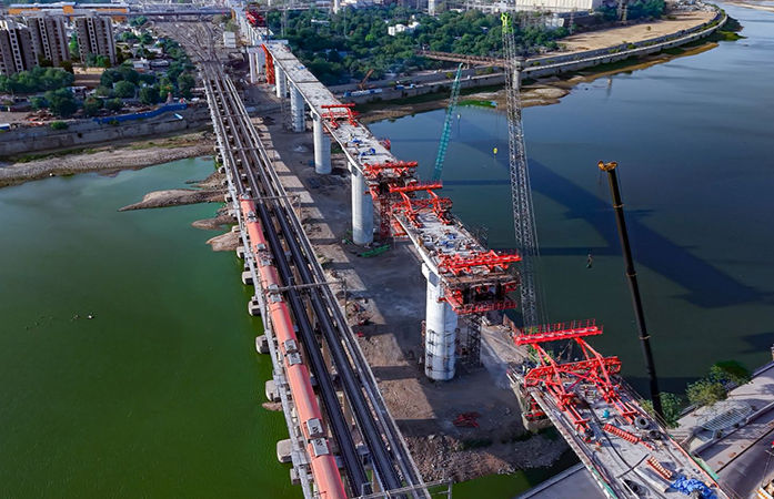 પુલના પાયા અને સબસ્ટ્રક્ચરનું તમામ કામ સો ટકા પૂર્ણ થઈ ગયું છે. 76 મીટરના ત્રણ સ્પાન તૈયાર છે, જ્યારે બાકીના સ્પાન અને સેગમેન્ટ કાસ્ટિંગની કામગીરી હાલમાં યુદ્ધના ધોરણે ચાલી રહી છે.