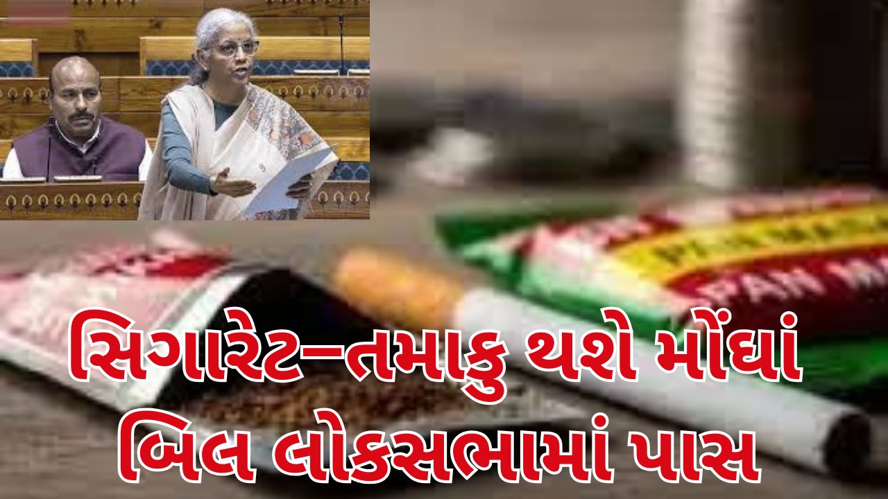 Excise Duty on Tobacco: દેશમાં પાન-મસાલા, તમાકુ અને સિગારેટ જેવી હાનિકારક ચીજવસ્તુઓ વધુ મોંઘી થવા જઈ રહી છે. સોમવારે નાણામંત્રી નિર્મલા સીતારમણે લોકસભામાં રજૂ કરેલું ‘સ્વાસ્થ્ય સુરક્ષાથી રાષ્ટ્રીય સુરક્ષા ઉપકર’ બિલ બે દિવસની ચર્ચા બાદ પાસ થયું છે. આ બિલ હવે રાજ્યસભામાં પસાર થયા બાદ કાયદો બનશે અને માર્ચ 2026માં પૂર્ણ થનારા **‘જીએસટી ક્ષતિપૂર્તિ ઉપકર’**નું સ્થાન લેશે.