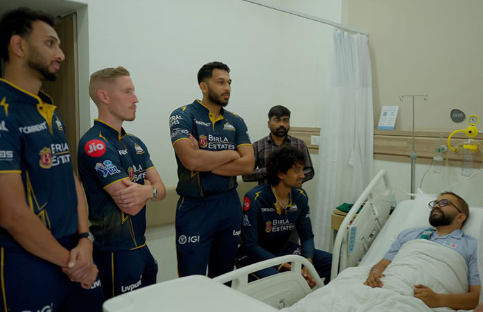 Heroes Beyond the Boundary: અમદાવાદમાં આઈપીએલની ધમાચકડી વચ્ચે ગુજરાત ટાઇટન્સ (GT) ના ખેલાડીઓએ માનવતાનું ઉત્કૃષ્ટ ઉદાહરણ પૂરું પાડ્યું છે. પ્રસિદ્ધ કૃષ્ણ, લ્યુક વુડ, શાહરૂખ ખાન અને સાઈ કિશોર જેવા સ્ટાર ખેલાડીઓએ અમદાવાદની ખાનગી હોસ્પિટલમાં કેન્સરના દર્દીઓની સરપ્રાઈઝ મુલાકાત લીધી હતી.