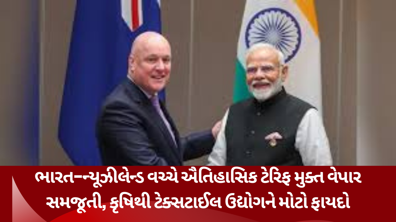India New Zealand Free Trade: ભારત અને ન્યૂઝીલેન્ડ વચ્ચેના આર્થિક સંબંધોમાં એક ઐતિહાસિક અધ્યાય ઉમેરાયો છે. બંને દેશો વચ્ચે લાંબા સમયથી ચાલી રહેલી મુક્ત વેપાર સમજૂતી (Free Trade Agreement – FTA) અંગેની ચર્ચાઓ સફળતાપૂર્વક પૂર્ણ થઈ ગઈ છે. આ સમજૂતી અંતર્ગત ન્યૂઝીલેન્ડે તેની 100 ટકા ટેરિફ લાઇન પર કર દૂર કરવાનો નિર્ણય લીધો છે, જેના કારણે ભારતીય નિકાસકારોને ન્યૂઝીલેન્ડના બજારમાં શૂન્ય ડ્યુટી સાથે સીધો પ્રવેશ મળશે.