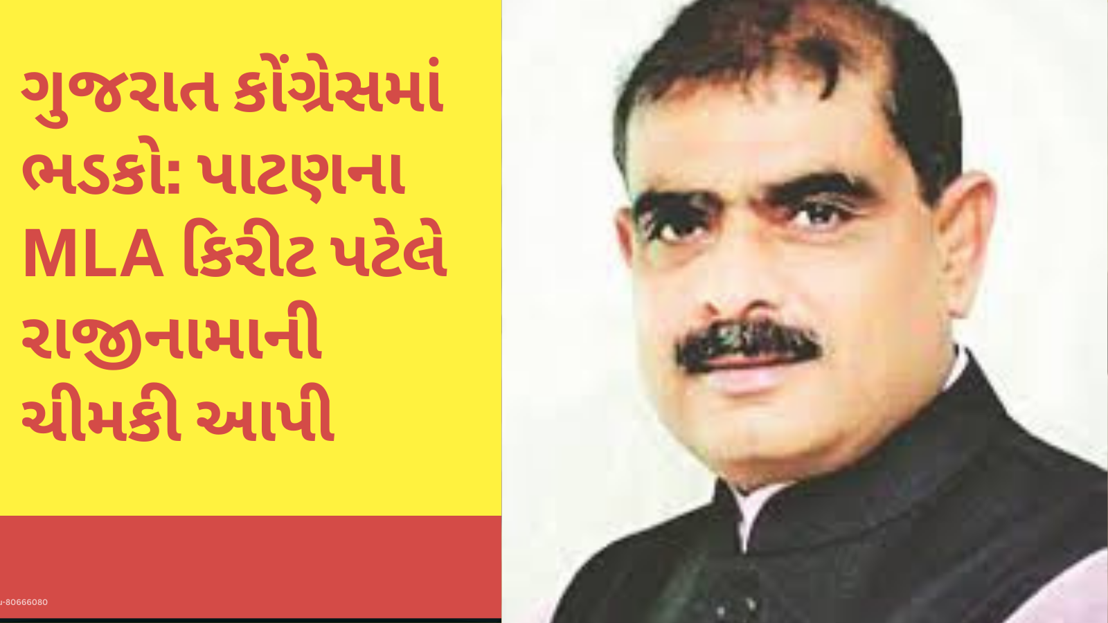 Patan MLA Kirit Patel :ગુજરાત કોંગ્રેસમાં ભડકો: પાટણના MLA કિરીટ પટેલે રાજીનામાની ચીમકી આપી