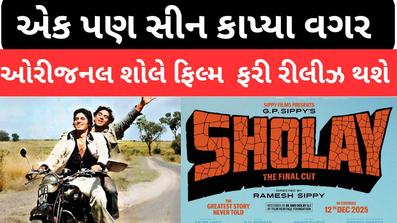 ‘શોલે: ધ ફાઈનલ કટ’ 12 ડિસેમ્બર, 2025ના રોજ દેશભરના સિનેમાઘરોમાં રિલીઝ થશે. પોસ્ટરમાં ઠાકુર અને ગબ્બરની ઝલક પણ દેખાઈ રહી છે, જે ચાહકોમાં ઉત્સાહ વધુ વધારી રહી છે.